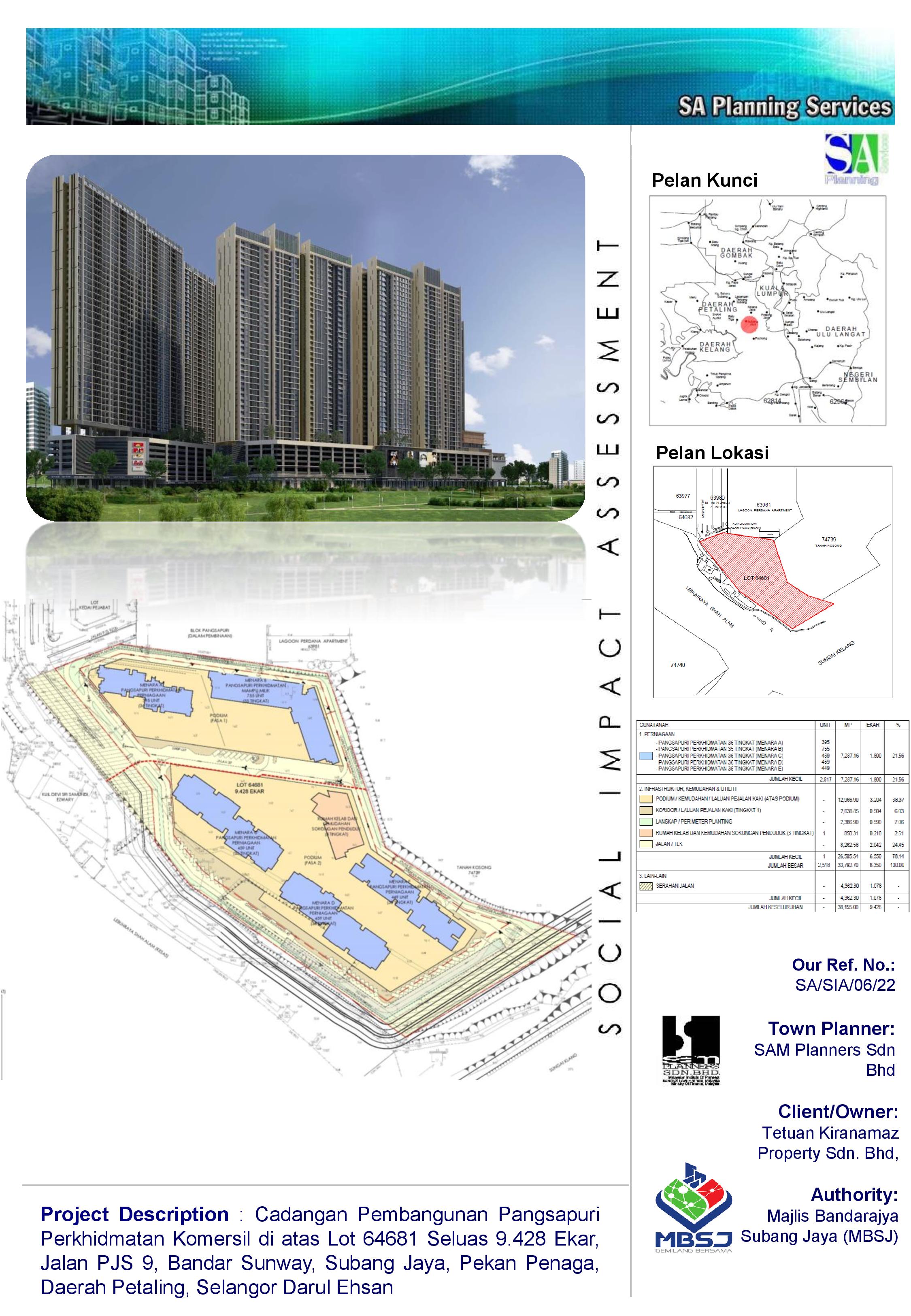 Kajian Penilaian Impak Sosial (SIA) Bagi Cadangan Pangsapuri Perkhidmatan Komersial Di Atas Lot 64681 Jalan Pjs 9, Bandar Sunway, Subang Jaya, Pekan Penaga, Daerah Petaling, Selangor Darul Ehsan